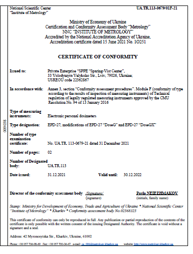 Rango de medición y de indicación de TDE de la radiación de rayos X por el dosímetro EPD-27 DoseGX |