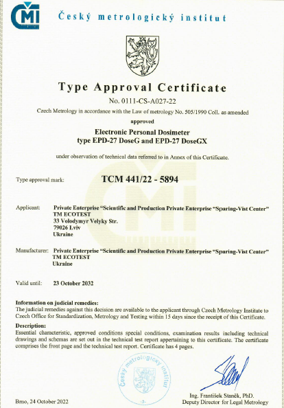 Límite del error relativo principal permisible del dosímetro EPD-27 DoseG al medir la TDE de radiación gamma en la calibración de 137Cs con una probabilidad de confianza de 0,95
